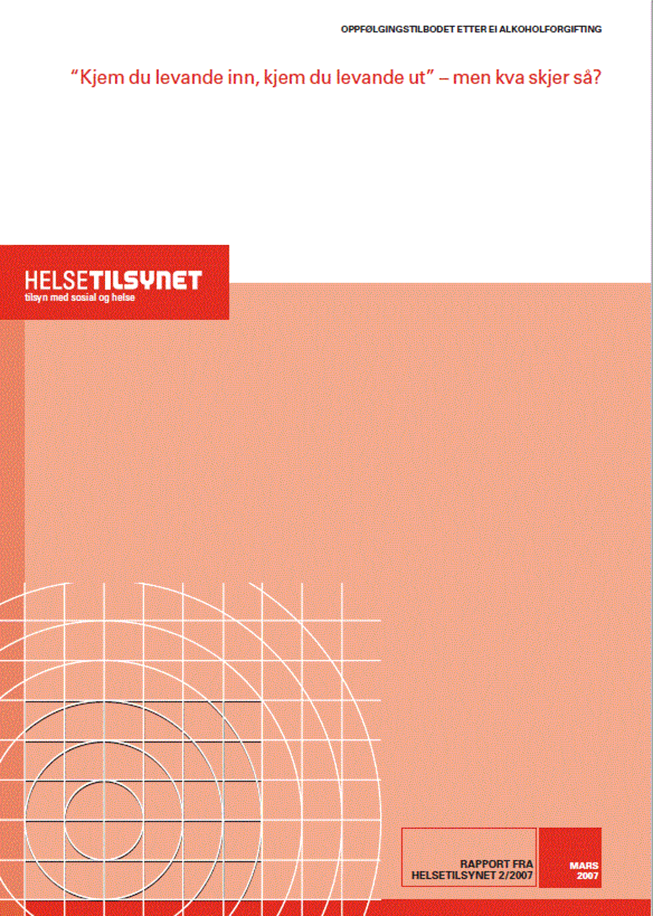 Raporttas coahkkáigeassá Dearvvašvuodageahccu dieduid háhkama dan birra movt cuovvolit olbmuid geat leat leamaš mirkkohuvvan alkohola geažil. Mii leat ohcan cállagiin ja gulahallan dutkiiguin ja dearvvašvuodabálvalusa hálddahuslaš ja klinihkkalaš dási ovddasteddjiiguin. Ulbmilin lea leamaš gávnnahit dieduid dan birra lea go gostege várra ahte dát olbmot eai oacco doarvái veahki ma??el.
